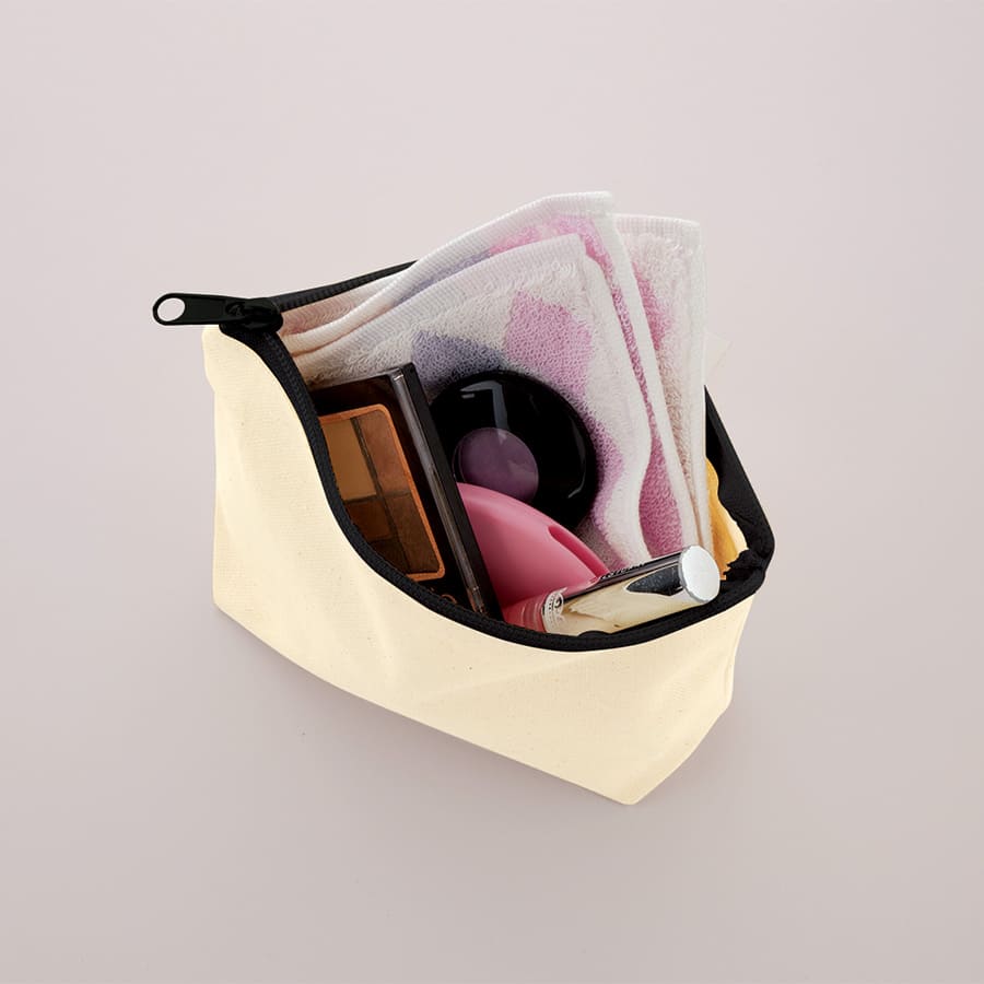 化粧道具やステーショナリー、小物を収納するのにぴったりな使いやすいキャンバスポーチです。