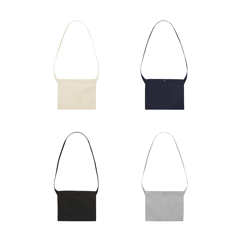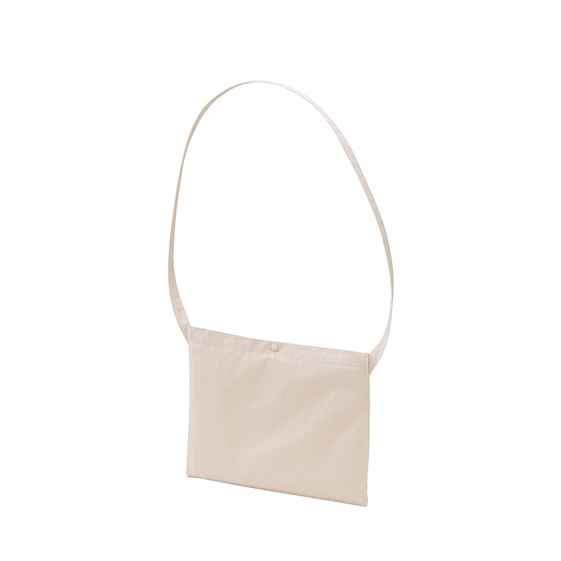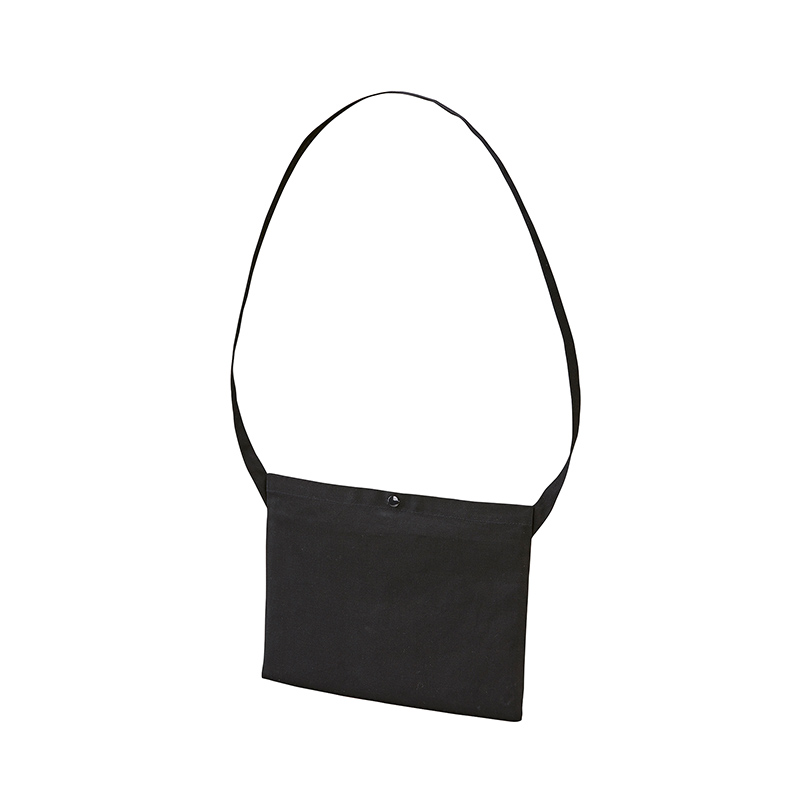 マチのないシンプルな袋状は、ちょっとした外出などの日常づかいにも使えるサイズ感。袋口には安心のスナップボタン付きです。